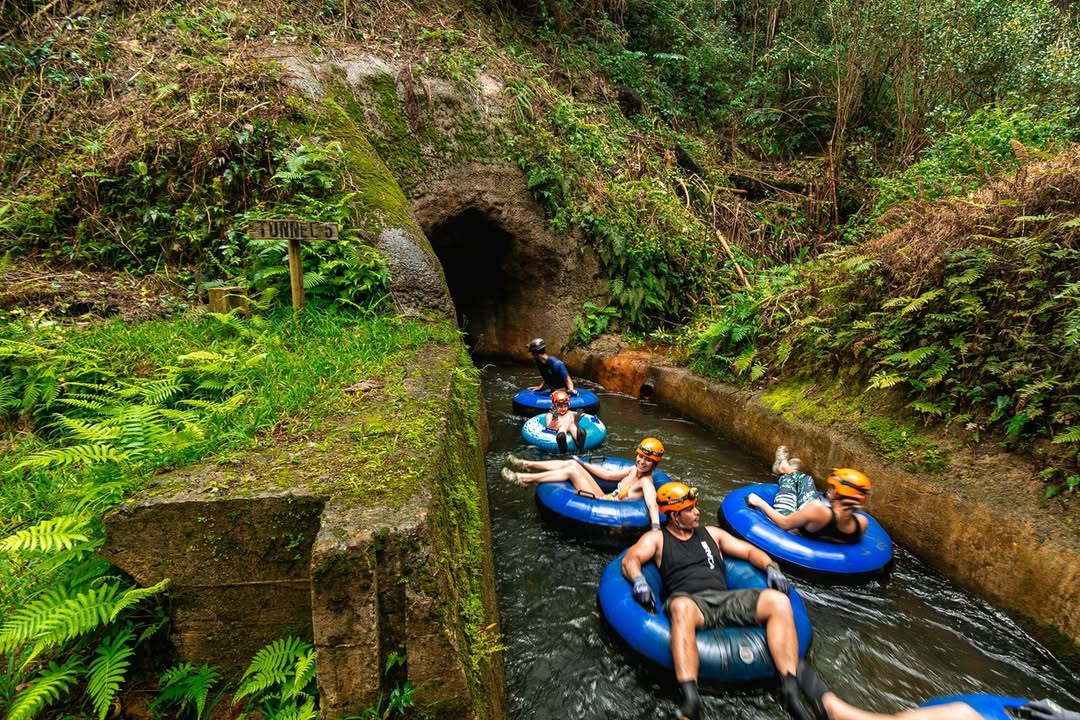 Once in the water, you’ll float down 2.5 miles of historic irrigation canals, originally built in the 1870s to support sugar plantations. Equipped with a tube, helmet, gloves, and headlamp, you’ll drift through five hand-carved tunnels, some of which are completely dark and illuminated only by your headlamp. The gentle current makes this a relaxing, family-friendly adventure, perfect for kids and adults alike.