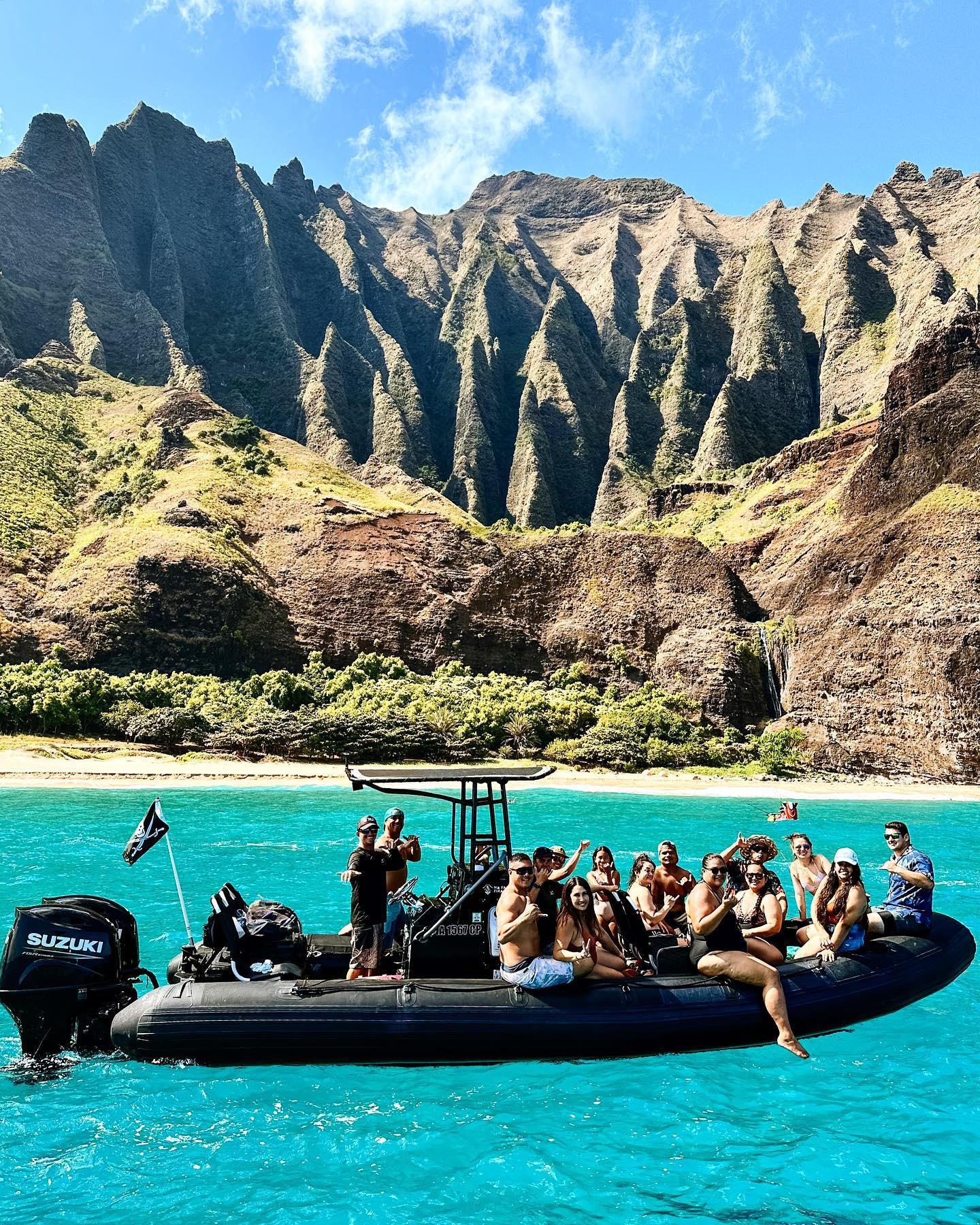 - Board the 27' Zodiac raft and set off along the Na Pali Coast.